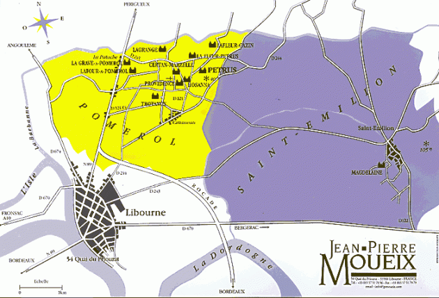 Map showing the location of all the Moueix-run Pomerol properties as well as their single estate in Saint Emilion, Château Magdelaine.