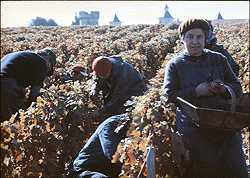 Harvest scene at Château Cos d’Estournel, whose exotic Chinese-style chai so impressed Stendhal in 1838.